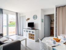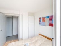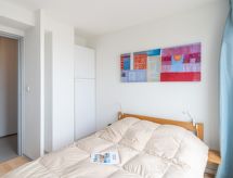 "Bleu Marine 266", 3-rums-lägenhet 45 m2 på 2. våningen. Praktiskt inredd: vardags-/matrum med 1 bäddsoffa för 2 personer (140 cm, längd 190 cm), TV, flatscreen TV och DVD. Utgång till terrassen. 1 rum med 1 dubbelsäng (140 cm, längd 190 cm). Utgång till terrassen. 1 litet rum med 2 sängar (80 cm, längd 190 cm). Öppet kök (2 kokplattor, miniugn, brödrost, vattenkokare, mikrovågsugn, elektrisk kaffemaskin, Kapslar till kaffemaskin (Senseo) extra). Badkar, sep. Toalett. Uppvärmning. Terrass 15 m2, västläge. Terrassmöbler. Vacker utsikt på havet. Till förfogande: tvättmaskin. Internet (Trådlös LAN [WLAN] , extra). Parkeringsplats (täckt). 1 husdjur/hund tillåtet.- Kännetecken för boendet