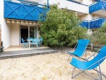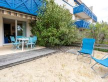"Bleu Marine 131", 2-rums-lägenhet 24 m2, på bottenvåningen. Objekt passande för 2 vuxna + 1 barn. Praktiskt inredd: vardags-/matrum med 1 bäddsoffa för 2 personer (160 cm, längd 190 cm), TV (flatscreen TV). Utgång till trädgården. 1 litet rum med 1 fransk säng (140 cm, längd 190 cm). Öppet kök (2 kokplattor - glaskeramikhäll, brödrost, vattenkokare, elektrisk kaffemaskin, Kapslar till kaffemaskin (nespresso) extra, kombinerad mikrovågsugn). Dusch, sep. Toalett. Uppvärmning. Terrass 9 m2, trädgård 25 m2. Terrassmöbler, vilstolar (2). Till förfogande: Internet (Trådlös LAN [WLAN] , extra). Parkeringsplats. Notera: brandvarnare.- Kännetecken för boendet