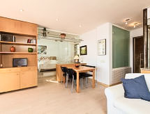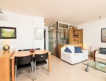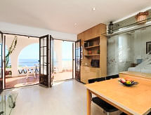 Urb. La Borna, 4 km från Begur: Flerfamiljshus "Bloc Goya". Utanför orten, 5 km från centrumet av Begur, lugnt, soligt läge på en kulle, 1.5 km från havet, i en återvändsgränd. För gemensamt bruk: trädgård (inhägnad) med gräsmatta 400 m2, pool (7 x 14 m, tillgång säsongsbunden: 15.Jun. - 15.Okt.). Utedusch. Trappor (29 trappsteg) till huset. Allmän parkering på gatan. Stormarknad 6.5 km, restaurang 1.5 km, bar 1.5 km, järnvägsstation "Flaçà" 30 km, sandstrand 8 km, stenstrand "Sa Tuna" 1.5 km, utomhusbad 100 m. Golfbana (36 hål) 24 km, tennis 7 km, ridstall 6 km. Notera: fordon rekommenderas. Simbassängen och den allmänna trädgården ligger i Miro byggnaden 100 m (för 3 hus).Interior