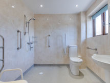 3-rums-stuga på bottenvåningen. Komfortabelt: vardags-/matrum med TV (flatscreen TV), DVD. Utgång till trädgårdssittplatsen. 1 rum med 2 sängar och dusch/toalett. 1 rum med 1 dubbelsäng. Öppet kök (4 kokplattor, ugn, diskmaskin, mikrovågsugn, frys). Dusch/toalett. Golvvärme. Trädgårdssittplats. Terrassmöbler. Till förfogande: tvättmaskin, torktumlare. Internet (Trådlös LAN [WLAN] , gratis). Parkeringsplats. Notera: rökfritt hus.- Utrustning