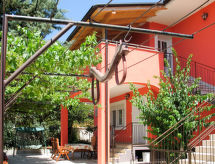 4-rums-lägenhet 85 m2, på bottenvåningen. Vardags-/matrum med sat-TV och luftkonditionering. Utgång till balkongen. 1 rum med 1 dubbelsäng. 1 rum med 1 dubbelsäng. Utgång till balkongen. 1 rum med 2 sängar. Kök (4 kokplattor, brödrost, vattenkokare, mikrovågsugn, frys, elektrisk kaffemaskin). 2 duschar/toaletter. Luftkonditionering (extra). 2 balkonger, terrass. Terrassmöbler, balkongmöbler. Till förfogande: barnsäng. Internet (Trådlös LAN [WLAN] , gratis). Notera: rökfritt hus. 1 husdjur/hund tillåtet.- Utrustning