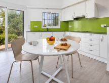 "Villa Bramble", 4-rums-villa 160 m2 med 2 våningar. Praktiskt och komfortabelt inredd: vardags-/matrum med sat-TV, luftkonditionering och varmluftsuppvärmning. Utgång till terrassen. 2 rum, till varje rum hör 2 sängar (90 cm, längd 200 cm). 1 rum med 1 fransk säng (2 x 200 cm), dusch/toalett. Öppet kök (ugn, diskmaskin, 4 kokplattor - glaskeramikhäll, brödrost, vattenkokare, mikrovågsugn, frys). Badkar/toalett. Nedre våning: vardagsrum med luftkonditionering och varmluftsuppvärmning. Utgång till trädgården. 2 rum, till varje rum hör 2 sängar (90 cm, längd 200 cm). Kök (diskmaskin, 3 kokplattor - glaskeramikhäll, frys). Dusch/toalett. Stor trädgård. Terrassmöbler, vilstolar (4), loggia. Panoramautsikt på havet, bergen och dalen. Till förfogande: tvättmaskin, strykjärn, barnsäng, hårtork. Internet (Trådlös LAN [WLAN] , gratis). Parkeringsplats. Lämpligt för barnfamiljer. VT-481944-A- Aktiviteter i närheten