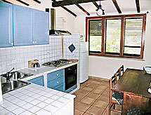 4-rums-villa 110 m2 med 2 våningar. Praktiskt inredd: stort vardags-/matrum med öppen spis och sat-TV. Utgång till terrassen. Kök (ugn, diskmaskin, mikrovågsugn). Nedre våning: 2 dubbelrum. 1 rum med 2 sängar. Dusch/bidé/toalett. Terrass 45 m2, täckt. Terrassmöbler. Till förfogande: tvättmaskin, kassaskåp, hårtork. Internet (Trådlös LAN [WLAN] , gratis). Max 1 husdjur/hund tillåtet.- Utrustning