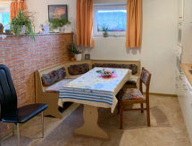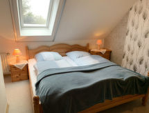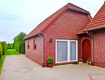 Utarp 11 km från Esens: Vackert 2-familjshus "Buss", med 2 våningar. I orten, 9 km från havet, 12 km från stranden, i en återvändsgränd. För privat bruk: vacker trädgård för avkoppling, damm. Berså, barnlekplats (gunga). I huset: centralvärme. Till förfogande: cyklar (2). Parkering (för 2 bilar) vid huset. Stormarknad 2.5 km, restaurang 3.5 km, bageri 400 m, café 7.5 km, busshållplats 450 m, sandstrand "Bensersiel" 12 km, utomhusbad 9 km, simhall 13 km. Golfbana (9 hål) 17 km. Notera: fordon rekommenderas.Interior