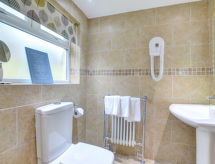 5-rums-stuga med 2 våningar. Ljus, enkelt och komfortabelt: vardagsrum med matbord och TV (flatscreen TV), stereoanläggning, DVD och vedugn. Utgång till trädgårdssittplatsen. Matrum med matbord. Kök (4 kokplattor, ugn, mikrovågsugn, frys) med matbord. Övre våning: 1 dubbelrum med 1 dubbelsäng, sat-TV och DVD. 1 rum med 2 sängar, handfat och sep. toalett. 1 rum med 2 sängar, sat-TV och DVD. 1 rum med 1 säng. Badkar/dusch/toalett. Uppvärmning. Trädgård. Terrassmöbler. Vacker utsikt på landskapet. Till förfogande: tvättmaskin, strykjärn, hög barnstol, barnsäng för barn under 2 år. Internet (Trådlös LAN [WLAN] , extra). Notera: rökfritt hus.- Kännetecken för boendet