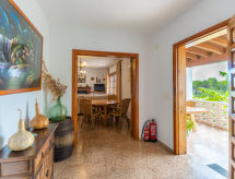 Mysig finca "Can Pep Jaume", byggnadsår 2004. Utanför orten, 3 km från centrumet av St. Carles, lugnt, soligt, upphöjt läge, 600 m från havet, belägen vid en väg. För privat bruk: tomt 6'000 m2 (inhägnad), pool kantig (8 x 3 m, 190 cm djup, tillgång säsongsbunden: 01.Maj. - 30.Okt.). Dusch/toalett i poolområdet, pergola (24 m2), terrass (90 m2), trädgårdsmöbler, utegrill. I huset: internetanslutning, Trådlös LAN [WLAN], luftkonditionering, tvättmaskin. Brant tillfart. Parkering (för 4 bilar) vid huset på tomten. Livsmedelsaffär 600 m, restaurang 400 m, busshållplats 300 m, sandstrand 900 m, strand vid klippor 500 m. Golfbana 15 km, tennis 500 m. Närbelägna sevärdheter: Cala Mastella 900 m, Cala Llenya 1 km, Cala Nova 2 km. Notera: fordon rekommenderas.Interior
