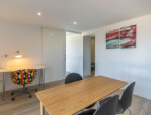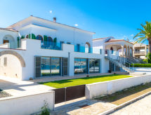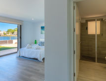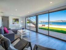 Alcúdia, Es Barcarés: Mycket barnvänlig, vacker villa "Can Verd", med 2 våningar. I ortsdelen Es Barcarés, i orten 4 km från centrumet av Alcúdia, lugnt läge villaområde, område med lite trafik, 2 km från skogsbrynet, 5 m från havet, 5 m från stranden, direkt tillgång till stranden, vid en gågata. För privat bruk: vacker trädgård i olika nivåer med gräsmatta, naturtomt. Utedusch, bordtennis, sittplats, berså, pergola, trädgårdsmöbler, utegrill. I huset: sällskapsrum, internetanslutning, Trådlös LAN [WLAN], gym, bordtennis, lekrum, cykelförråd, luftkonditionering, tvättstuga, tvättmaskin, torktumlare, torkrum. Parkering, allmänt parkeringshus, allmän parkering på gatan. Affär 2 km, livsmedelsaffär 700 m, stormarknad 2 km, restaurang, bar 50 m, bageri 2 km, café 50 m, cykeluthyrning 2 km, …minuts promenad till centrum 25, busshållplats, sandstrand 700 m, strand vid klippor 5 m, dykcenter 4 km, utomhusbad 6 km, badvik 150 m, badanläggning vid stranden 55 m. Sporthamn 6 km, marina 5 km, golfbana (18 hål) 5 km, surfskola 4 km, seglarskola 6 km, tennis 5 km, ridstall 6 km, sportcentrum 6 km, lekplats 700 m. Notera: lämplig för barnfamiljer, passande för äldre. Objekt passande för 10 vuxna tonårsgrupper endast på förfrågan. Ägaren accepterar inga ungdomsgrupper. Lugnt och tyst område. Tystnad och gott uppförande förväntas.Interior