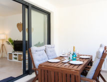 "Capistrano 21", 3-rums-lägenhet 75 m2, på bottenvåningen. Rymlig, praktiskt och komfortabelt inredd: vardags-/matrum med digital-TV och luftkonditionering. Utgång till terrassen. 1 rum med 1 utdragbar säng (2 x 90 cm, längd 190 cm), luftkonditionering. Utgång till terrassen. 1 rum med 1 fransk säng (150 cm, längd 190 cm), dusch/toalett och luftkonditionering. Öppet kök (ugn, diskmaskin, 4 kokplattor - glaskeramikhäll, brödrost, vattenkokare, mikrovågsugn, frys). Dusch/toalett. Ingen uppvärmningsmöjlighet. Stor terrass. Terrassmöbler. Till förfogande: tvättmaskin, hög barnstol, barnsäng, hårtork. Internet (Trådlös LAN [WLAN] , gratis). VTF/MA/53436- Utrustning