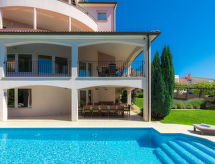12-rums-villa 600 m2 med 4 våningar. Komfortabelt inredd: vardags-/matrum med sat-TV (flatscreen TV), luftkonditionering. Utgång till terrassen. 1 rum med 1 fransk säng (180 cm, längd 200 cm). 1 rum med 2 sängar (90 cm, längd 200 cm). Öppet kök (4 kokplattor, ugn, diskmaskin, mikrovågsugn, frys, elektrisk kaffemaskin). Badkar/dusch/toalett. Nedre våning: vardagsrum med öppen spis, sat-TV och luftkonditionering. Utgång till terrassen, till swimmingpoolen. 1 rum med 1 fransk säng (180 cm, längd 200 cm). Öppet kök (4 kokplattor, ugn, diskmaskin, mikrovågsugn, frys, elektrisk kaffemaskin). Badkar/bidé/toalett. Övre våning: 1 rum med 1 fransk säng (160 cm, längd 200 cm), dusch/toalett och luftkonditionering. Utgång till terrassen. 1 rum med 1 fransk säng (160 cm, längd 200 cm), luftkonditionering. Utgång till terrassen. 1 rum med 1 fransk säng (160 cm, längd 200 cm), dusch/toalett. Dusch/toalett. 2:a våningen vardags-/matrum med sat-TV (flatscreen TV). 1 rum med 1 fransk säng (160 cm, längd 200 cm). Utgång till terrassen. 1 rum med 2 sängar (90 cm, längd 200 cm). Öppet kök (ugn, 4 kokplattor - glaskeramikhäll, frys) med luftkonditionering. Utgång till terrassen. Dusch/toalett. Uppvärmning (extra). 3 terrasser 40 m2, täckt, terrass 30 m2, täckt. Terrassmöbler, vilstolar. Härlig panoramautsikt på havet och landskapet. Till förfogande: kassaskåp, hög barnstol, barnsäng. Internet (Trådlös LAN [WLAN] , gratis).- Aktiviteter i närheten