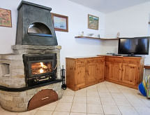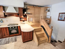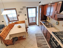 3-rums-lägenhet 95 m2 med 2 våningar på 1. våningen. Rymlig, praktiskt och komfortabelt inredd: ingång. Stort vardags-/matrum med 1 bäddsoffa för 2 personer, öppen spis, matbord, matvrå och TV (flatscreen TV). Utgång till balkongen. Stort kokvrå (4 kokplattor, ugn, mikrovågsugn, frys, grill). Sep. Toalett. Nedre våning: 1 rum med 2 sängar. 1 dubbelrum. Badkar/dusch/bidé/toalett. Uppvärmning. Trägolv. Liten balkong. Panoramautsikt på bergen, dalen och floden. Till förfogande: tvättmaskin, strykjärn, barnsäng (extra), hårtork, ved (gratis). Internet (Trådlös LAN [WLAN] , gratis). Notera: rökfri lägenhet. Max 1 husdjur/hund tillåtet. CIR:014073-CNI-00029- Kännetecken för boendet