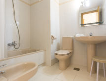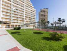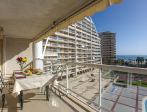 4-rums-lägenhet 100 m2 på 4. våningen. Rymlig och ljus, komfortabelt inredd: vardags-/matrum med matbord, digital-TV och flatscreen TV. Utgång till terrassen. 1 rum med 1 fransk säng (135 cm, längd 190 cm), badkar/bidé/toalett och fläkt. Utgång till terrassen. 1 rum med 2 sängar (90 cm, längd 190 cm). 1 rum med 1 fransk säng (135 cm, längd 190 cm). Kök (ugn, 4 kokplattor - glaskeramikhäll, brödrost, vattenkokare, mikrovågsugn, frys, elektrisk kaffemaskin). Utgång till balkongen. Dusch/bidé/toalett. Eluppvärmning. Värme finns inte i alla rum. Liten balkong, stor terrass. Terrassmöbler. Utsikt på havet, swimming-poolen och orten. Till förfogande: tvättmaskin, strykjärn, hög barnstol, barnsäng för barn under 2 år, hårtork. Parkeringsplats vid huset. Notera: lämpligt för barnfamiljer. Rökfri lägenhet. VT-49962-V- Kännetecken för boendet