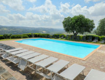 "Casa dell'Orto", 3-rums-hus 70 m2, på bottenvåningen. Rustikt och smakfullt inrett: öppet litet vardagsrum med 1 bäddsoffa för 2 personer och TV. 1 dubbelrum med dusch/toalett och luftkonditionering. 1 rum med 2 sängar och luftkonditionering. Kök vid ingången (4 kokplattor, ugn) med matbord. Dusch/bidé/toalett. Berså. Terrassmöbler, utegrill. Panoramautsikt på landskapet. Till förfogande: tvättmaskin, hög barnstol, barnsäng. Internet (Trådlös LAN [WLAN] , gratis). Notera: privat entré, privat entré.- Utrustning