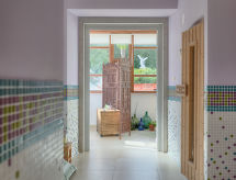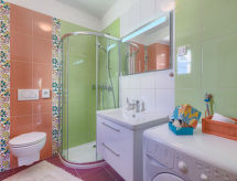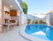 Marčana 11 km från Pula: Vackert parhus "CasaMenta", med 2 våningar. I centrum av Marčana, soligt läge, 9 km från havet. För privat bruk: tomt 700 m2 (inhägnad), vacker, välskött trädgård med planteringar och blommor, pool uppvärmd (30 m2, 140 cm djup, tillgång säsongsbunden: 25.Apr. - 24.Okt.) med innertrappor. Toalett i poolområdet, utedusch, utegrill. I huset: internetanslutning, bastu (extra). Ångbad (extra). Rum för avkoppling, spa-område (extra), tvättmaskin. Till förfogande: cyklar (5). Parkering (för 2 bilar, täckt) vid huset på tomten. Affär 50 m, restaurang 200 m, grusstrand 9 km, strand vid klippor 9 km. Ridstall 7 km, vandringsleder från huset 100 m, cykelled 150 m. Närbelägna sevärdheter: Adrenalin park 7 km. Pool uppvärmd (extra).Interior