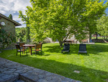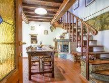 Lantgods "Il Casellino", 460 meter över havsytan, med 2 våningar, omgiven av träd. 4 lägenheter i fastigheten. Hyresobjekt bestående av huvud- och sidobyggnad 5 km från centrumet av Loro Ciuffenna, avskilt, lugnt läge, i det gröna. För gemensamt bruk: tomt 200 ha, trädgård (inte inhängnad) med gräsmatta och träd, pool oregelbundet formad (8 x 4 m, tillgång säsongsbunden: 01.Maj. - 25.Sep.). Utedusch, utegrill. I huset: tvättmaskin (för gemensamt bruk, extra). 600 m lång brant, smal tillfart. Parkering (täckt) på tomten. Affär 5 km, stormarknad 12 km, järnvägsstation "Montevarchi" 15 km. Vandringsleder från huset 50 m. Närbelägna sevärdheter: Firenze 60 km, Arezzo 40 km, Siena 60 km. Notera: fordon rekommenderas. Lokal försäljning av lantgårdsprodukter. Ägaren bor på samma tomt.Interior