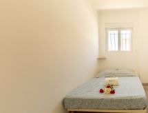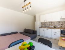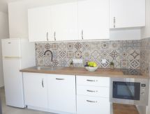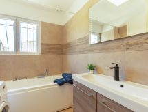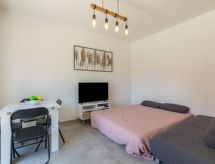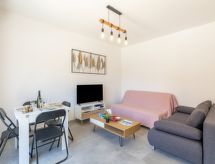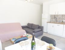 2-rums-lägenhet 34 m2 på 1. våningen. Fullständigt renoverad år 2022, komfortabelt och vackert inredd: vardags-/matrum med 1 bäddsoffa för 2 personer (1 x 140 cm, längd 190 cm), TV (flatscreen TV), luftkonditionering. Utgång till terrassen. 1 rum med 1 fransk säng (1 x 140 cm, längd 190 cm). Öppet kök (diskmaskin, 2 Induktionshäll, brödrost, mikrovågsugn, frys, elektrisk kaffemaskin). Badkar, sep. Toalett. Eluppvärmning. Terrass 9 m2. Elektrisk grill. Till förfogande: tvättmaskin, strykjärn, hårtork. Internet (Trådlös LAN [WLAN] , gratis). Notera: 1 husdjur/hund tillåtet. TV bara FR. Brandvarnare. Annonsering av en privatperson enligt artikel 155, IV, CGI.- Utrustning