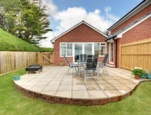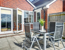 3-rums-ena hälften av ett parhus. Praktiskt och komfortabelt inredd: vardagsrum med sat-TV, flatscreen TV och DVD. Matrum med CD. 1 rum med 1 fransk säng. Kök (4 kokplattor, ugn, diskmaskin, X kokplattor - glaskeramikhäll, mikrovågsugn) med bar. Dusch/toalett. Gasuppvärmning. Terrass, trädgård. Terrassmöbler, utegrill. Till förfogande: tvättmaskin, torktumlare, hög barnstol, barnsäng för barn under 2 år. Internet (Trådlös LAN [WLAN] ). Parkeringsplats vid huset. Notera: rökfritt hus.- Utrustning