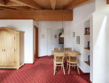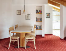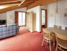 3-rums-lägenhet 62 m2, på takvåningen, sydostläge. Delvis sluttande tak: vardags-/matrum med kabel-TV (flatscreen TV). 1 dubbelrum. 1 dubbelrum med handfat. Öppet kök (ugn, diskmaskin, brödrost, vattenkokare, elektrisk kaffemaskin). Badkar/toalett. Balkong, sydläge och österläge. Terrassmöbler. Utsikt på bergen. Till förfogande: hårtork. Internet (Trådlös LAN [WLAN] , gratis). Notera: rökfri lägenhet. Max 1 husdjur/hund tillåtet.- Kännetecken för boendet