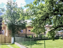 4-rums-chalet 120 m2 med 2 våningar. Romantisk och med mycket trä inrett: ingång. Vardags-/matrum med kabel-TV (flatscreen TV), stereoanläggning, DVD och vedugn. Utgång till terrassen. Stort, öppet kök (ugn, diskmaskin, 4 kokplattor - glaskeramikhäll, mikrovågsugn, frys, elektrisk kaffemaskin). Badkar/dusch, sep. Toalett. Takvåning: 2 dubbelrum. 1 rum med 1 säng och 1 dubbelsäng. Utgång till balkongen. Dusch/toalett. Trägolv. Stor trädgård. Utsikt på landskapet. Till förfogande: hårtork. Internet (Trådlös LAN [WLAN] , gratis). Notera: rökfri lägenhet. 1 husdjur/hund tillåtet. Lämpligt för allergiker, brandvarnare.- Kännetecken för boendet