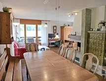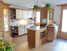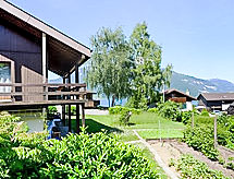 4-rums-lägenhet 112 m2 med 2 våningar. Ljus, delvis sluttande tak, praktiskt och mysigt inredd: öppet vardags-/matrum med öppen spis, matbord, kabel-TV och kakelugn. Utgång till terrassen. Öppet kök (ugn, diskmaskin, 4 kokplattor - glaskeramikhäll, mikrovågsugn, elektrisk kaffemaskin, raclettegrill, fondueset (ost )). Badkar/toalett. Övre våning: 1 stort rum med snedtak med 1 dubbelsäng (2 x 90 cm, längd 200 cm), handfat. 1 stort rum med snedtak med 3 sängar (90 cm, längd 190 cm), handfat. 1 litet rum med snedtak, utan skåp med 1 säng (90 cm, längd 200 cm), 1 sovmöjliget (80 cm, längd 190 cm). Stor terrass 50 m2, trädgård, gräsmatta. Terrassmöbler, utegrill, vilstolar. Vacker utsikt på sjön, bergen och landskapet. Till förfogande: hårtork. Internet (Trådlös LAN [WLAN] , gratis). Parkeringsplats (2 Bilar) vid huset. Notera: lämpligt för barnfamiljer. Rökfri lägenhet. Max 1 husdjur/hund tillåtet.- Utrustning