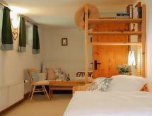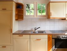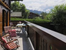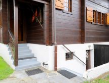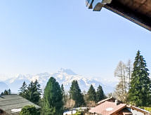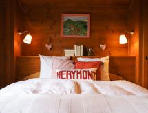 "Chalet Merymont", 4-rums-chalet 110 m2 med 3 våningar, sydläge. Komfortabelt och mysigt inrett: vardags-/matrum med bibliotek, TV och internationella TV-kanaler (flatscreen TV), DVD. Utgång till balkongen, mot söder. Öppet kök (ugn, diskmaskin, 4 kokplattor - glaskeramikhäll, brödrost, vattenkokare, mikrovågsugn, frys, elektrisk kaffemaskin, Kapslar till kaffemaskin (Nespresso) extra, raclettegrill, fondueset (ost )). Nedre våning: 1 rum med 2 sängar (90 cm, längd 200 cm), 1 bäddsoffa. Dusch/toalett. Övre våning: 2 rum, till varje rum hör, 1 fransk säng (180 cm, längd 200 cm). Sep. Toalett, badkar/dusch/toalett. Stor balkong, sydläge, stor trädgård 600 m2, sydläge. Terrassmöbler, balkongmöbler, utegrill (flyttbar). Mycket vacker panoramautsikt på bergen och trädgården. Till förfogande: tvättmaskin, torktumlare, telefon, strykjärn, hårtork. Internet (Trådlös LAN [WLAN] , gratis). Parkeringsplats, garage i 50 m. Notera: rökfritt hus. Brandvarnare, brandsläckare.- Utrustning
