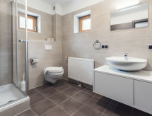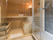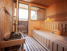 3-rums-lägenhet 88 m2, på bottenvåningen. Smakfullt inredd: 2 dubbelrum, till varje rum hör, dusch/toalett och flatscreen TV. Vardags-/matrum 35 m2 med 1 bäddsoffa för 2 personer, braskamin och flatscreen TV. Utgång till terrassen. Öppet kök (diskmaskin, 4 kokplattor - glaskeramikhäll, mikrovågsugn, elektrisk kaffemaskin). Sep. Toalett. Stor terrass. Terrassmöbler. Till förfogande: bastu. Internet (Trådlös LAN [WLAN] , gratis). Notera: rökfri lägenhet. 1 husdjur/hund tillåtet. Brandvarnare.- Utrustning