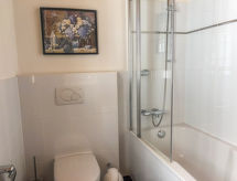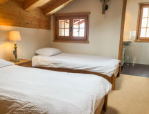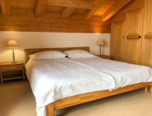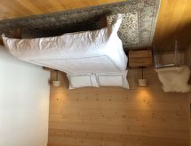 4-rums-lägenhet 119 m2 på 1. våningen, sydläge. Komfortabelt och mysigt inredd: vardags-/matrum med braskamin och digital-TV. Utgång till balkongen, mot söder och mot väst. 1 rum med 1 dubbelsäng (2 x 90 cm, längd 200 cm). Utgång till balkongen, mot väst. Öppet kök (diskmaskin, 4 kokplattor - glaskeramikhäll, brödrost, vattenkokare, mikrovågsugn, elektrisk kaffemaskin, Kapslar till kaffemaskin (Nespresso) extra, raclettegrill, fondueset (ost )). Dusch/toalett. Övre våning: 1 rum med 1 dubbelsäng (2 x 90 cm, längd 200 cm), badkar/toalett. Utgång till balkongen, mot söder. 1 rum med 2 sängar (90 cm, längd 200 cm), dusch/toalett. Parkettgolv, heltäckningsmatta. Härlig panoramautsikt på bergen. Till förfogande: strykjärn, barnsäng för barn under 3 år, ved (extra). Internet (Trådlös LAN [WLAN] , gratis). Parkeringsplats (1 Bil), garage nr 15. Notera: rökfri lägenhet. Privat entré, privat entré, brandsläckare.- Kännetecken för boendet