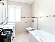 "Villa Checa", 4-rums-villa på bottenvåningen. Praktiskt inredd: vardags-/matrum med öppen spis, sat-TV, internationella TV-kanaler, luftkonditionering och varmluftsuppvärmning. Utgång till terrassen, till swimmingpoolen. 1 rum med 1 fransk säng (200 cm, längd 200 cm), luftkonditionering och varmluftsuppvärmning. 1 rum med 1 fransk säng (150 cm, längd 190 cm). 1 rum med 1 x 2 våningssängar. Öppet kök (ugn, diskmaskin, 3 kokplattor - glaskeramikhäll, brödrost, vattenkokare, mikrovågsugn, frys, elektrisk kaffemaskin). Badkar/toalett, dusch/bidé/toalett. Vattenberedare (75 liter). Terrass, stor. Terrassmöbler, vilstolar (6). Härlig panoramautsikt på havet. Till förfogande: tvättmaskin, myggnät, barnsäng, hårtork. Internet (Trådlös LAN [WLAN] , gratis). AT-446123-A- Aktiviteter i närheten