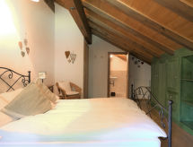 "Chesa Seglias", 3-rums-lägenhet 100 m2 på 2. våningen. Delvis renoverad år 2013, komfortabelt och mysigt inredd: öppet vardags-/matrum med öppen spis och TV (flatscreen TV). Utgång till balkongen. 1 rum med 1 fransk säng (1 x 155 cm, längd 185 cm). 1 stort dubbelrum med 1 dubbelsäng (1 x 160 cm, längd 190 cm). Öppet kök (ugn, diskmaskin, 4 kokplattor - glaskeramikhäll, brödrost, vattenkokare, elektrisk kaffemaskin, Kapslar till kaffemaskin (Nespresso) extra, fondueset (chinoise, ost )). 2 duschar/bidéer/toaletter. Övre våning: litet galleri. Trägolv. Liten balkong 5 m2. Balkongmöbler. Vacker utsikt på bergen och landskapet. Till förfogande: hårtork. Internet (Trådlös LAN [WLAN] , gratis). Garage nr 6 (Sella Seglias), höjd 205 cm, bredd 240 cm. Notera: rökfri lägenhet, rökfritt hus, parkeringsplats endast för små bilar. Max 2 husdjur/hundar tillåtna. Ingen hiss.- Utrustning