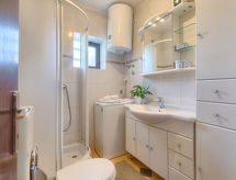 3-rums-hus 108 m2 på 1. våningen. Vardags-/matrum 33 m2 med 1 bäddsoffa för 2 personer (160 cm, längd 190 cm), sat-TV (flatscreen TV), luftkonditionering. Utgång till terrassen. 1 rum med 1 dubbelsäng (2 x 90 cm, längd 200 cm). 1 rum med 2 sängar (90 cm, längd 200 cm). Öppet kök (ugn, diskmaskin, 4 gasflammor, vattenkokare, frys, elektrisk kaffemaskin). Dusch/bidé/toalett, sep. Toalett. Uppvärmning (extra). Terrass 8 m2, täckt, terrass 15 m2. Terrassmöbler, vilstolar. Utsikt på swimming-poolen och trädgården. Till förfogande: strykjärn, barnsäng, hårtork. Internet (Trådlös LAN [WLAN] , gratis). Notera: rökfritt hus.- Utrustning