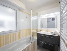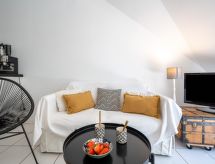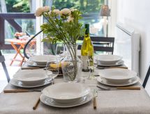 Flerfamiljshus "Clair de lune", med 2 våningar. I orten 500 m från centrumet av Carnac Plage, 200 m från havet, 200 m från stranden. Affär 1 km, stormarknad 1.6 km, restaurang 350 m, bageri 1 km, café 1 km, …minuts promenad till centrum 10, sandstrand "Plage de Légenèse" 250 m, bad med varma källor "Thalassothérapie de Carnac" 1 km. Golfbana (18 hål) 13 m, seglarskola 1 km, tennis 250 m. Närbelägna sevärdheter: Les Alignements de Carnac 3 km, La Trinité sur Mer 4 km, Presqu'ile de Quiberon 15 km, Auray et le vieux port de St Goustan 12 km, Vannes 35 km, Lorient 60 km. Vandringsområden Le Golfe du Morbihan 30 m.Interior