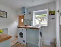 "Claire's Cottage", 2-rums-stuga. Komfortabelt och mysigt: vardags-/matrum med braskamin, matbord och TV. Utgång till trädgården. Kök (4 kokplattor, ugn, mikrovågsugn, frys). Övre våning: 1 dubbelrum med 1 dubbelsäng. Dusch/toalett. Liten terrass. Terrassmöbler, utegrill. Till förfogande: tvättmaskin. Internet (Trådlös LAN [WLAN] , gratis). Notera: inte passande för små barn. Rökfritt hus. TV bara EN.- Utrustning