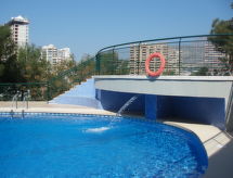 Playa de Poniente: Stort, enkelt flerfamiljshus "Coblanca XVI", med 16 våningar, omgiven av träd. I orten 3 km från centrumet av Benidorm, i distriktet Playa Poniente, lugnt, soligt, upphöjt läge, 400 m från havet, 400 m från stranden, mot öster. För gemensamt bruk: tomt (inhägnad), trädgård i olika nivåer planteringar och träd, naturtomt 800 m2 (inhägnad), pool (7 x 15 m, 78 - 230 cm djup, tillgång säsongsbunden: 01.Jan. - 31.Dec.). Barnbassäng, utedusch, tennis (extra). I anläggningen: hiss. Parkering på tomten, allmän parkering. Affär 500 m, stormarknad 400 m, köpcentrum, restaurang 500 m, bar, café 100 m, busshållplats "Benidorm" 400 m, järnvägsstation "Benidorm" 4 km. Golfbana (18 hål) 4 km, vandringsleder från huset 600 m. Närbelägna sevärdheter: Benidorm Palace 7 km, Aqualandia 7 km, Mundomar 7 km, Terra Mitica 4 km, Terra Natura 4 km, Alicante 40 km. Notera: babyutrustning på förfrågan. Ägaren accepterar inga ungdomsgrupper.Interior