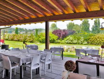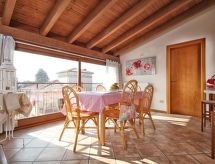 Residens "Il Colombaro", från 1300-talet, renoverat. 21 lägenheter i residenset. I ortsdelen Cunettone di Salò 4 km från centrumet av Salò, soligt läge på en kulle, 4 km från sjön, på golfbanan. För gemensamt bruk: tomt 150'000 m2, blommor och träd, äng, pool (14 x 7 m, tillgång säsongsbunden: 01.Maj. - 30.Sep.). Barnbassäng, utedusch. I anläggningen: restaurang, bar, Uppvärmning betalas lokalt. Parkering på tomten. Stormarknad 200 m, grusstrand 4 km. Närbelägna sevärdheter: Desenzano del Garda 19 km, Brescia 39 km.Interior