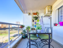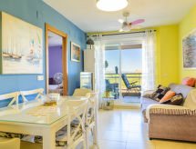 "Colomeras", 3-rums-lägenhet 60 m2 på 4. våningen. Praktiskt och komfortabelt inredd: vardags-/matrum med matbord, digital-TV, flatscreen TV, luftkonditionering, fläkt och varmluftsuppvärmning. Utgång till terrassen. 2 rum, till varje rum hör, 1 fransk säng (135 cm, längd 190 cm), fläkt. Kök (ugn, 4 kokplattor - glaskeramikhäll, brödrost, vattenkokare, mikrovågsugn, frys). Badkar/bidé/toalett, dusch/bidé/toalett. Terrass. Terrassmöbler. Sidoutsikt vidsträckt utsikt på havet. Till förfogande: tvättmaskin, strykjärn, hårtork. Internet (Trådlös LAN [WLAN] , gratis). Parkeringsplats vid huset. Notera: rökfri lägenhet. R000000001- Kännetecken för boendet