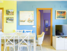 Flerfamiljshus "Colomeras". Lugnt, soligt läge, 300 m från havet, 300 m från stranden. För gemensamt bruk: pool (10 x 20 m, 200 cm djup, tillgång säsongsbunden: 15.Jun.-30.Sep.). Barnbassäng, utedusch. I huset: hiss. Parkering vid huset. Stormarknad 500 m, restaurang, bar, café 100 m, sandstrand 300 m.Interior