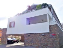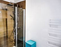 3-rums-lägenhet 63 m2 på 1. våningen. Rymlig, komfortabelt och modernt inredd: vardags-/matrum med TV (flatscreen TV). Utgång till terrassen, mot öster. 1 rum med 2 sängar (90 cm, längd 190 cm). 1 rum med 1 fransk säng (140 cm, längd 190 cm), TV (flatscreen TV). Kök (ugn, diskmaskin, 3 Induktionshäll, mikrovågsugn, frys). Utgång till balkongen. Dusch, sep. Toalett. Gasuppvärmning. Stor terrass 21 m2. Terrassmöbler. Till förfogande: tvättmaskin, strykjärn, hårtork. Parkeringsplats nr 8 et 18 (2 Bilar). Notera: brandvarnare. 640240002357B- Kännetecken för boendet