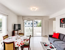 Anglet 5 km från Interhome Biarritz: Residens "Comete", med 2 våningar, byggnadsår 2017. I ortsdelen Place Lamothe, lugnt läge i ett bostadsområde, 3 km från havet, 3 km från stranden. Parkering. Affär, livsmedelsaffär, restaurang, bageri 200 m, busshållplats "Place Lamothe" 200 m, järnvägsstation "Gare de La Négresse" 5.2 km, sandstrand "Plage de la Chambre d'Amour" 3 km. Golfbana 4 km, surfskola 3 km, ridstall 3 km. Närbelägna sevärdheter: Marché du Quintaou 500 m, Phare de Biarritz 4 km, Aquarium de Biarritz 6 km, Promenade de la Barre 3 km. Vandringsområden La Rhune 37 km. Nyckelöverlämningen sker på kontoret Interhome i Biarritz, 5 km.Interior
