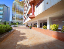 Playa de Levante: Flerfamiljshus "Coral Beach", med 22 våningar. 3 km från centrumet av Calpe, 100 m från havet. För gemensamt bruk: tomt (inhägnad), 3 pooler (tillgång säsongsbunden: 01.Jan. - 31.Dec.). Dusch/toalett i poolområdet, barnbassäng, utedusch, terrass. I huset: Trådlös LAN [WLAN], hiss. Stormarknad, restaurang, bar 100 m, sandstrand 150 m, badvik 300 m. Golfbana (9 hål) 12 km, tennis 3 km. Närbelägna sevärdheter: Aqualandia, Mundomar, Terra Mítica, Terra Natura, Benidorm Palace (Benidorm).Interior
