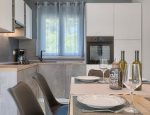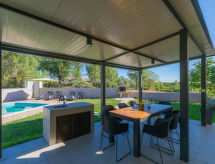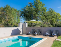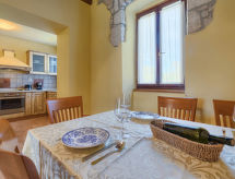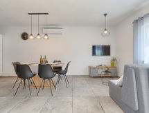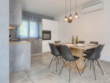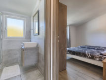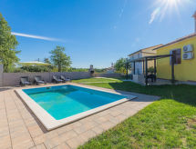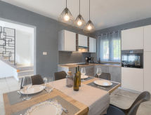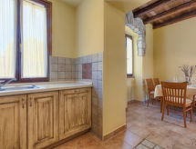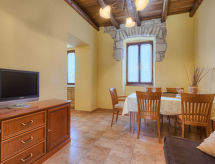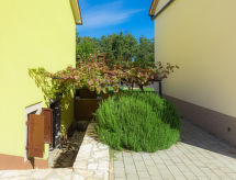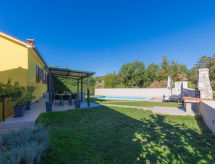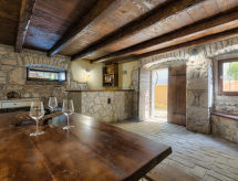 Enfamiljshus "Corina", med 2 våningar. I den lilla byn Mali Golji 5 km från centrumet av Labin, lugnt, soligt läge, 12 km från havet. För privat bruk: tomt 500 m2, liten trädgård med gräsmatta och planteringar, pool kantig (8 x 3 m, 26 m2, 140 cm djup, tillgång säsongsbunden: 25.Apr. - 10.Okt.) med innertrappor. Utedusch, terrass (15 m2), trädgårdsmöbler, utegrill. I huset: internetanslutning, tvättmaskin. Parkering (för 4 bilar) vid huset på tomten. Affär 1 km, stormarknad 5 km, restaurang 3 km, grusstrand 12 km. Ridstall 10 km, vandringsleder från huset 100 m, cykelled 150 m. Objektet hyr ut som en enhet, men består av två hus.Interior