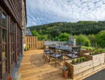 4-rums-stuga med 2 våningar. Ljus, enkelt och komfortabelt: vardagsrum med TV (flatscreen TV), stereoanläggning och DVD. Utgång till terrassen. Lekrum med TV, flatscreen TV och DVD. Kök (4 kokplattor, ugn, diskmaskin, mikrovågsugn, frys) med matbord. Sep. Toalett. Övre våning: 2 dubbelrum, till varje rum hör, 1 dubbelsäng. 1 rum med 1 säng, 1 dubbelsäng och 1 utdragbar säng. Badkar/dusch/toalett. Uppvärmning. Trädgård. Terrassmöbler. Vacker utsikt på landskapet. Till förfogande: tvättmaskin, torktumlare. Internet (Trådlös LAN [WLAN] , gratis). Notera: rökfritt hus.- Kännetecken för boendet