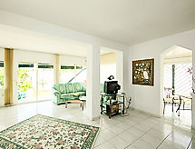 3-rums-ena hälften av ett parhus 100 m2. Komfortabelt inredd: vardags-/matrum med sat-TV och CD. 1 rum med 1 fransk säng. 1 rum med 2 sängar. Kök (4 kokplattor, ugn, mikrovågsugn). Dusch/toalett. Eluppvärmning. Terrass 10 m2, täckt. Terrassmöbler, vilstolar (4). Begränsad vidsträckt utsikt på havet och bergen. Till förfogande: tvättmaskin, torktumlare, strykjärn, hårtork. Parkeringsplats, höjd 250 cm, bredd 500 cm. VFT/MA/33737- Utrustning
