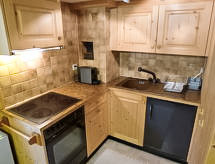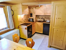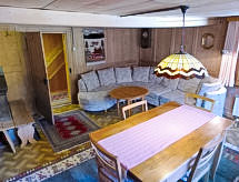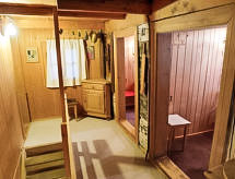 "Crestatgiet", 4-rums-lägenhet 79 m2 med 2 våningar. Enkelt och rustikt inredd: vardags-/matrum, takhöjd 170 - 190 cm, låga dörrkarmar, 165 cm med kakelugn. Kök (ugn, 4 kokplattor - glaskeramikhäll, elektrisk kaffemaskin) med matbord. Sep. Toalett. Vattenberedare (300 liter). Övre våning: 3 rum, till varje rum hör 2 sängar. Dusch/toalett. Eluppvärmning, Täljstensugn. Trägolv. Notera: rökfri lägenhet.- Utrustning