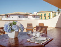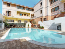 Litet residens "Cristal Blu", med 3 våningar. 21 lägenheter i residenset. I ortsdelen Santa Teresa 300 m från centrumet av Santa Teresa di Gallura, centralt läge, 800 m från havet. För gemensamt bruk: gård, pool (12 x 6 m, 80 - 160 cm djup, tillgång säsongsbunden: 01.Apr. - 27.Okt.). Utedusch. I anläggningen: reception, sällskapsrum, internetanslutning, Trådlös LAN [WLAN], tvättmaskin (för gemensamt bruk), cykeluthyrning. Centrala parkeringsplatser. Sandstrand "'Rena Bianca'" 800 m. Marina 200 m. Bilden är bara ett exempel på en lägenhet. Hyresobjekten kann variera i boyta, planlösning, utrustning och möblering.Interior