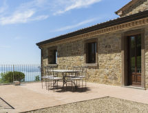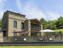 Vacker, luxuös villa "Cuor di Leone", 350 meter över havsytan, fristående. 7 km från centrumet av Tuoro, soligt, upphöjt läge på en kulle, villaområde, 7 km från sjön. För privat bruk: trädgård 3'000 m2 (inhägnad), pool (14 x 5 m, 130 - 250 cm djup, tillgång säsongsbunden: 01.Maj. - 30.Sep.). Utedusch, bubbelbad, trädgårdsmöbler, utegrill. Tillfart (1 km naturväg). Parkering vid huset. Livsmedelsaffär 7 km, stormarknad 7 km, restaurang 1 km. Närbelägna sevärdheter: Passignano Sul Trasimeno 12 km, Cortona 20 km, Castiglion Del Lago 23 km, Montepulciano 35 km, Perugia 40 km. Notera: fordon rekommenderas. Tonårsgrupper endast på förfrågan.Interior