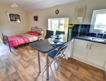1-rums-studio. Ljus, komfortabelt inredd: vardags-/sovrum med 1 dubbelsäng, TV och DVD. Utgång till trädgården. Öppet kök (4 kokplattor, ugn, mikrovågsugn, frys) med bar. Dusch/toalett. Uppvärmning. Trädgård. Terrassmöbler. Panoramautsikt på landskapet. IPod-dockningsstation. Notera: rökfritt hus.- Utrustning