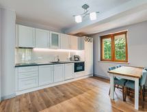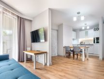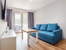 "Sun & Snow apartament Delux dla 4 osób", 2-rums-lägenhet 40 m2. Vardags-/sovrum med 1 bäddsoffa och sat-TV. 1 rum med 2 sängar. Öppet kök (ugn, diskmaskin, 1 Induktionshäll, brödrost, vattenkokare, mikrovågsugn, elektrisk kaffemaskin). Dusch/toalett. Uppvärmning, oljeuppvärmning. Balkong. Till förfogande: strykjärn, hårtork. Internet (Trådlös LAN [WLAN] ).- Utrustning