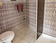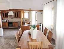 "Buddha (Cyrill)", 4-rums-hus 238 m2. Rustikt och mysigt inrett: vardags-/matrum med öppen spis, matbord, bar, dusch/toalett, sat-TV och gasuppvärmning. Utgång till trädgårdssittplatsen. 1 rum med 1 dubbelsäng (155 cm, längd 195 cm), gasuppvärmning. 1 rum med 1 x 2 våningssängar (90 cm, längd 200 cm), 1 fransk säng (155 cm, längd 185 cm), gasuppvärmning. 1 rum med 1 bäddsoffa och 1 dubbelsäng (150 cm, längd 190 cm), badkar/toalett, bubbelbad och gasuppvärmning. Kök (ugn, diskmaskin, 4 kokplattor - glaskeramikhäll, mikrovågsugn, frys) med bar. Utgång till trädgårdssittplatsen. Övre våning: (utetrappa) Studio med 1 fransk säng (150 cm, längd 200 cm), dusch/toalett och gasuppvärmning. Utgång till terrassen. (ugn, 4 kokplattor - glaskeramikhäll) med matbord och gasuppvärmning. Stor trädgård. Terrassmöbler, utegrill, vilstolar (6). Vidsträckt utsikt på havet och bergen. Till förfogande: tvättmaskin. Internet (Trådlös LAN [WLAN] , gratis). Parkeringsplats (inhägnad). Lämpligt för barnfamiljer. Max 2 husdjur/hundar tillåtna. HUTTE046443- Kännetecken för boendet