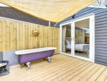 "Dart View Cabin", 2-rums-chalet. Vackert och mysigt inrett: öppet vardags-/matrum med TV. 1 dubbelrum med 1 säng, dusch/toalett, badkar/dusch/toalett, TV och CD. Utgång till terrassen. Kök (2 kokplattor, mikrovågsugn, frys, elektrisk kaffemaskin, Kapslar till kaffemaskin (Lavazza)). Uppvärmning.- Kännetecken för boendet