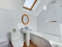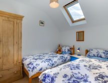 4-rums-hus med 2 våningar. Rymlig och ljus, komfortabelt och smakfullt inrett: öppet vardagsrum med TV, flatscreen TV och DVD. Öppet kök (4 kokplattor, ugn, mikrovågsugn, frys) med matbord. Sep. Toalett. Övre våning: 1 dubbelrum med 1 dubbelsäng och TV (flatscreen TV). 1 dubbelrum med 1 dubbelsäng. 1 rum med 2 sängar. Badkar/dusch/toalett. Uppvärmning. Terrassmöbler, utegrill. Vacker utsikt på havet. Till förfogande: tvättmaskin, torktumlare. Internet (Trådlös LAN [WLAN] , gratis). Notera: rökfritt hus. 2 husdjur/hundar tillåtna.- Kännetecken för boendet