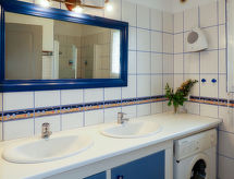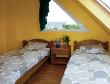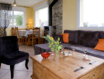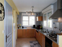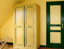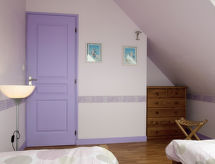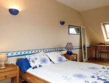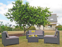 "de la Plage (PBA104)", 4-rums-hus 80 m2 med 2 våningar. Vackert och mysigt inrett: vardags-/matrum med braskamin, matbord och sat-TV (flatscreen TV), stereoanläggning och DVD. Öppet kök (ugn, diskmaskin, 5 gasflammor, brödrost, vattenkokare, mikrovågsugn, frys, elektrisk kaffemaskin). Utgång till trädgårdssittplatsen. Dusch, sep. Toalett, dubbelt handfat. Övre våning: 1 rum med snedtak med 1 fransk säng (140 cm, längd 190 cm). 2 rum med snedtak, till varje rum hör 2 sängar (90 cm, längd 190 cm). Eluppvärmning. Terrassmöbler, utegrill, vilstolar (2). Till förfogande: tvättmaskin, strykjärn, hög barnstol, barnsäng. Notera: rökfritt hus. Max 1 husdjur/hund tillåtet. Brandvarnare.- Utrustning